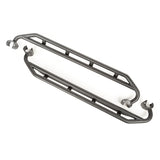 Keep your rocker panels from being beaten to a pulp on the trail with Rugged Ridge's Side Armor. Built from heavy-duty 2 x 0.120 inch black texture powder coated steel tubing, these guards will take the beating that was meant for your body sheet metal. Simple bolt-on design utilizes existing body mount locations for a secure, rattle free installation. The black texture finish resists scratches and gives a slip-resistant surface for door entry. Sold as a pair and includes all necessary installation hardware. Will not fit factory rock rail option. This item carriers a 400lb max weight limit.