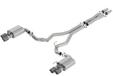 System will fit Bullitt models. NOT recommended for use on Convertibles. This 3" diameter high flow Cat-Back(tm) system was designed specifically for the Mustang GT and has Active Exhaust Valves. The system features a Merge X-Pipe for increased performance and improved sound. The system has Borla(r)'s Polyphonic Exhaust Harmonizer Technology which utilizes patented units that contain pipes of different diameters and lengths to create multiple exhaust notes that harmonize to deliver a clean, rich, full-bodied sound to the Borla(r) mufflers. The mufflers then enhance this sound to the character and volume of the aggressive ATAK(r) sound, with no drone inside the vehicle. The exhaust exits thru dual 4" round carbon fiber tips with bright centers on each muffler. Systems with bright chrome on T-304 stainless steel tips, and black chrome on T-304 stainless steel are also available. Borla(r) Cat-Back(tm) and Axle-Back multi-core technology is designed to unleash hidden horsepower. Increased exhaust velocity adds power, driving excitement, fuel economy, and the distinctive Borla(r) Sound of Power respected by motoring enthusiasts everywhere. Each system is built from premium T-304 stainless steel, superior to T-400 series knockoffs (such as 409), to give you the absolute best in performance and durability. Ultra-smooth mandrel bends ensure maximum flow & power, and precision computer numerical control (CNC) manufacturing ensures an accurate fit. Best of all, Borla(r) stands behind every system with a Million-Mile Warranty. Just what you'd expect from the world's most experienced (and most winning) exhaust brand.