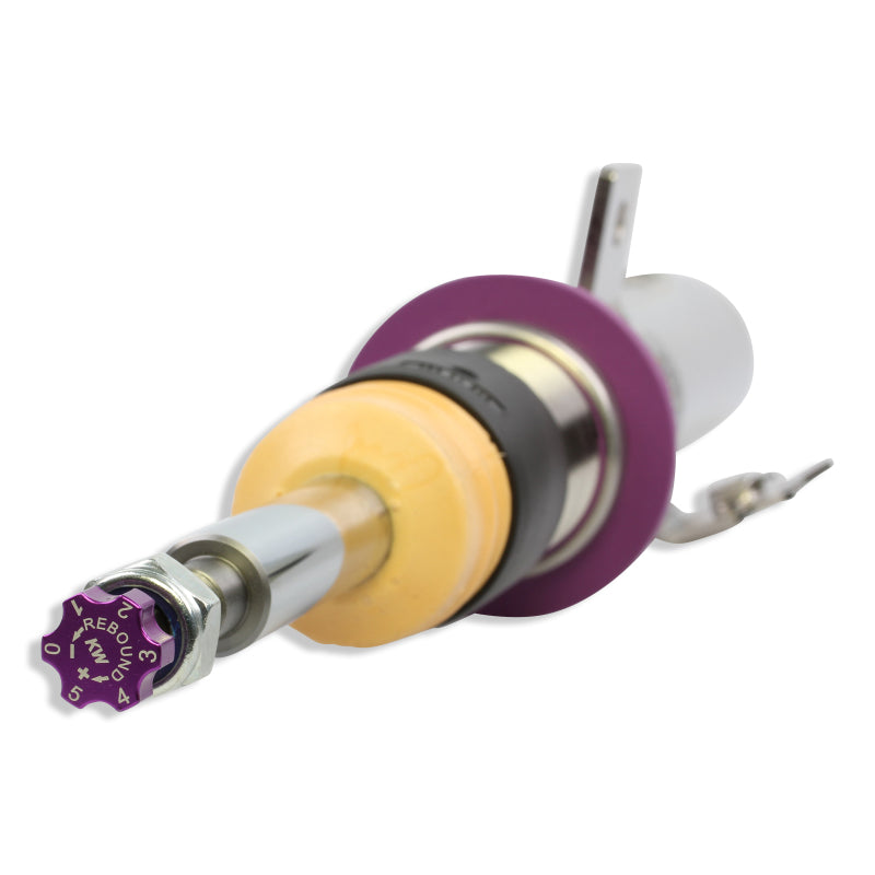 KW V2 INOX-LINE coilovers are the perfect solution for drivers who want more than just outstanding looks and adjustable ride height. In addition to stainless steel coilover struts, and corrosion-resistant components built for long term durability, KW V2 coilovers utilize TVR-A (Twin Valve Rebound - Adjustable) technology that allow Adjustment of the rebound damping characteristics with 16 clicks so you can fine tune the ride comfort or performance to your satisfaction. As with all KW coilovers our engineers develop vehicle specific damper settings that undergo comprehensive testing on the Nurburgring Nordschleife and in our KW 7-post Driving Dynamic Test Center. With a KW coilover kit the driving experience is more dynamic and direct. With the rebound adjustability you have a more direct influence on the handling or comfort of the car. With 16 precise clicks you can adjust the KW dampers (more firm or more comfortable) without affecting the compression damping fine-tuned by our engineers. The two-stage, patented TVR-A (Twin Valve Rebound - Adjustable) technology enables a small volume of oil flow through an adjustable, conically shaped, low-speed bypass during low damper speeds, while at high damper speeds, the main rebound stage valve opens allowing a larger volume of oil to flow. This provides a big improvement in terms of ride comfort without influencing the high-speed range. There are 16 precise clicks available for individual settings, so you can choose between more comfort or more body control. With KW V2 coilovers you can achieve maximum lowering within an approved lowering range that ensures a proper functioning suspension and adequate travel after your car is lowered. Even after years of use you can easily adjust the ride height thanks to the dirt resistant trapezoid thread and composite adjustment collar.