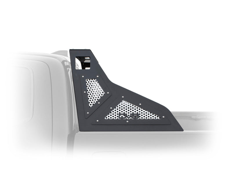 The DV8 Offroad RRTT1-03 Chase Rack is a completely bolt on rack that features multiple mounting options for lights. The rack bolts securely to the bed of the Tacoma and completely enhanced the looks of the truck. This rack also features mesh aluminum accents that can be unbolted and color keyed to match your vehicle or theme. This rack features the option to mount a light bar behind the cab where wind noise is much less of a factor than a standard windshield mount light bar. Features: Multiple lighting configurations, Textured 3 stage powdercoat, steel construction, Light weight, Bolt-on installation, Standard DV8 warranty.