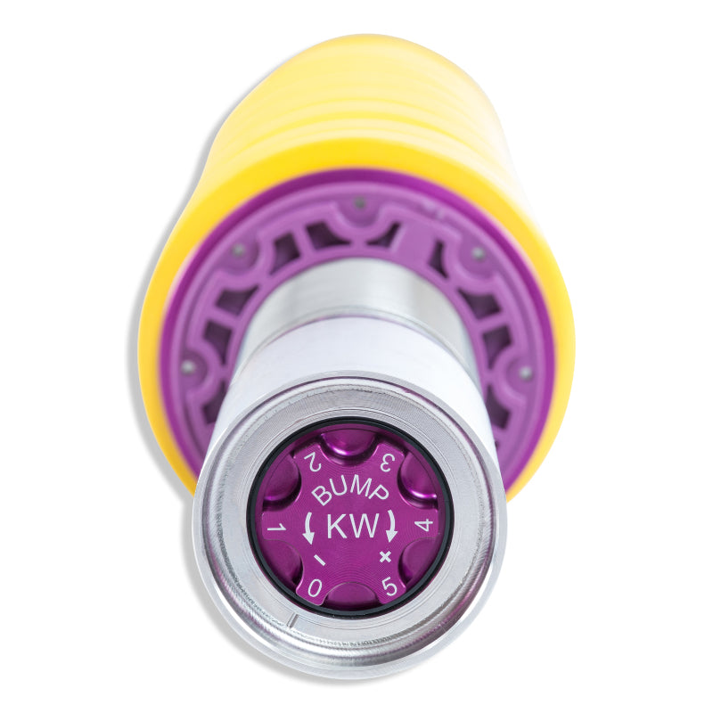 Cutting-edge motorsports technology for more performance on the road. Like every suspension product developed by KW automotive, the suspension manufacturer, and manufactured in Germany, the KW V3 Coilover suspension kit also provides a significant plus in safety reserves in road traffic. Thanks to the chassis with its high-quality dampers, springs, and elastomer spring elements, pitching and rolling movements during load changes such as evasive maneuvers, cornering, acceleration, and braking are significantly reduced. The braking distances are also shortened. Thanks to improved support and feedback, drivers not only feel safer but driving in everyday life becomes even safer. With compression and rebound stage damping, that can be set separately and independently of each other, the damper setup can be customized to your personal driving preferences or vehicle changes such as weight, tire characteristics, or altered vehicle rigidity. True performance optimization is only possible with this unique, patented system. For example, this allows the compression damping force to be increased and get more grip from the tires, to improve cornering behavior and reduce squat without simultaneously altering the rebound stage damping which is optimally matched to the spring rate, a scenario which results in reduced grip and the associated loss of performance. The KW V3 coilover kit is the ideal tool for performance-oriented drivers and experienced tuning enthusiasts who place a strong emphasis on the overall performance of their suspension. The Variant 3 features patented TVR-A and TVC-A technology that provides separately adjustable rebound and compression damping. The extensive adjustment range of the independently configurable rebound and compression make it easy to directly influence the steering behavior, directional stability, grip and handling characteristics for confident and repeatable results at the limit of driving dynamics.