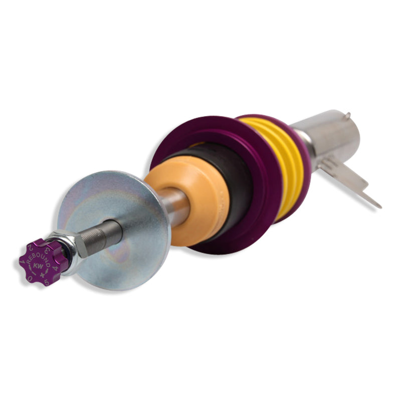 Cutting-edge motorsports technology for more performance on the road. Like every suspension product developed by KW automotive, the suspension manufacturer, and manufactured in Germany, the KW V3 Coilover suspension kit also provides a significant plus in safety reserves in road traffic. Thanks to the chassis with its high-quality dampers, springs, an d elastomer spring elements, pitching and rolling movements during load changes such as evasive maneuvers, cornering, acceleration, and braking are significantly reduced. The braking distances are also shortened. Thanks to improved support and feedback, drivers not only feel safer but driving in everyday life becomes even safer. With compression and rebound stage damping, that can be set separately and independently of each other, the damper setup can be customized to your personal driving preferences or vehicle changes such as weight, tire characteristics, or altered vehicle rigidity. True performance optimization is only possible with this unique, patented system. For example, this allows the compression damping force to be increased and get more grip from the tires, to improve cornering behavior and reduce squat without simultaneously altering the rebound stage damping which is optimally matched to the spring rate, a scenario which results in reduced grip and the associated loss of performance. The KW V3 coilover kit is the ideal tool for performance-oriented drivers and experienced tuning enthusiasts who place a strong emphasis on the overall performance of their suspension. The Variant 3 features patented TVR-A and TVC-A technology that provides separately adjustable rebound and compression damping. The extensive adjustment range of the independently configurable rebound and compression make it easy to directly influence the steering behavior, directional stability, grip and handling characteristics for confident and repeatable results at the limit of driving dynamics.