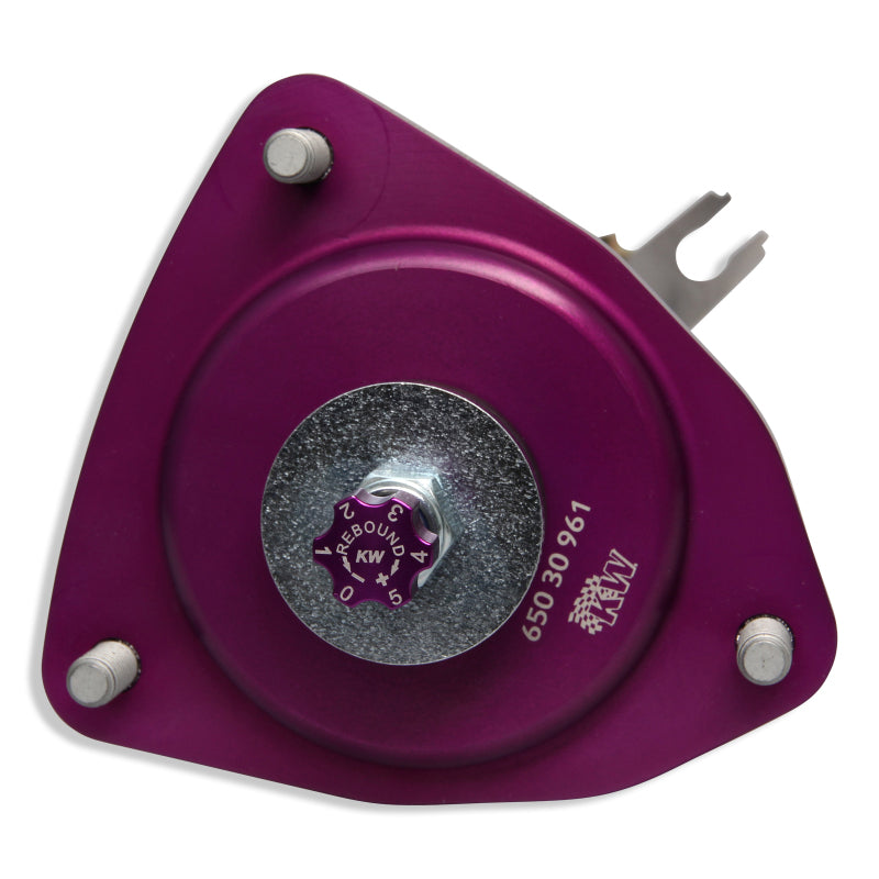 Cutting-edge motorsports technology for more performance on the road. Like every suspension product developed by KW automotive, the suspension manufacturer, and manufactured in Germany, the KW V3 Coilover suspension kit also provides a significant plus in safety reserves in road traffic. Thanks to the chassis with its high-quality dampers, springs, and elastomer spring elements, pitching and rolling movements during load changes such as evasive maneuvers, cornering, acceleration, and braking are significantly reduced. The braking distances are also shortened. Thanks to improved support and feedback, drivers not only feel safer but driving in everyday life becomes even safer. With compression and rebound stage damping, that can be set separately and independently of each other, the damper setup can be customized to your personal driving preferences or vehicle changes such as weight, tire characteristics, or altered vehicle rigidity. True performance optimization is only possible with this unique, patented system. For example, this allows the compression damping force to be increased and get more grip from the tires, to improve cornering behavior and reduce squat without simultaneously altering the rebound stage damping which is optimally matched to the spring rate, a scenario which results in reduced grip and the associated loss of performance. The KW V3 coilover kit is the ideal tool for performance-oriented drivers and experienced tuning enthusiasts who place a strong emphasis on the overall performance of their suspension. The Variant 3 features patented TVR-A and TVC-A technology that provides separately adjustable rebound and compression damping. The extensive adjustment range of the independently configurable rebound and compression make it easy to directly influence the steering behavior, directional stability, grip and handling characteristics for confident and repeatable results at the limit of driving dynamics.