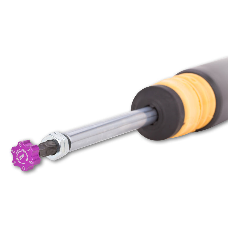 Is your factory sport suspension too firm? Do you want a sporty look and driving dynamics without having to compromise comfort? KW V2 comfort coilovers take the already stellar ride and reputation of KW suspensions coilover systems to the next level of comfort. Designed specifically to maximize comfort KW V2 Comfort coilovers provide a subtle lowering with adjustable ride height and rebound damping adjustability allowing the handling or the comfort to be individually tailored as desired via the integrated rebound adjustment knobs. KW V2 Comfort coilovers offer the perfect compromise of driving dynamics and ride comfort. With the KW V2 Comfort coilover kit, your comfort-oriented driving pleasure is the focus. That's why our test engineers evaluate the setups on numerous highways and country roads with various road surface types. The KW V2 Comfort coilover kits are suitable for all drivers who want to combine the joy of a decent lowering with driving comfort. With the 16-click adjustable rebound damping (TVR-A-technology), you can tune the KW dampers on the KW V2 Comfort coilover kits to make it more comfortable or sportier. The two-stage, patented TVR-A (Twin Valve Rebound - Adjustable) technology enables a small volume of oil to flow through an adjustable, conically shaped, low-speed bypass during low damper speeds, while in the case of higher damper speeds, the main rebound stage valve opens allowing a larger volume of oil to flow. This provides a big improvement in terms of ride comfort without influencing the safety-relevant high-speed range. There are 16 precise clicks available for individual settings, so you can choose between more comfort or more body control. The KW V2 Comfort coilovers, made using INOX-LINE stainless steel technology, enables a vehicle-specific lowering within the tested adjustment range of 10 to 40 mm.